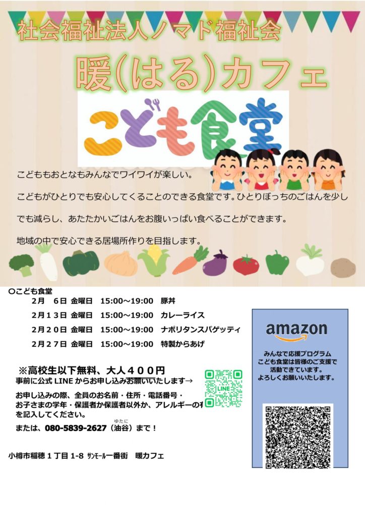 『こども食堂 暖(はる)カフェ』にて、食事ができるそうです。