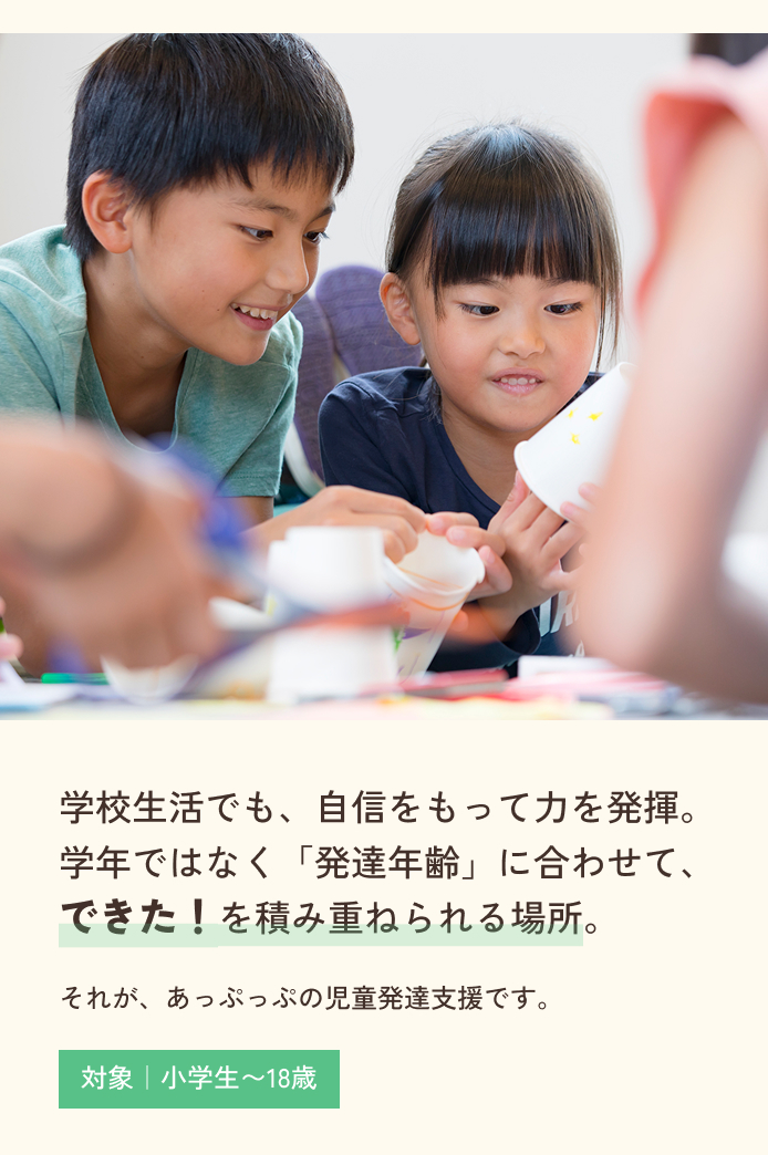 あっぷっぷの放課後等デイサービスでは、年齢ではなく、