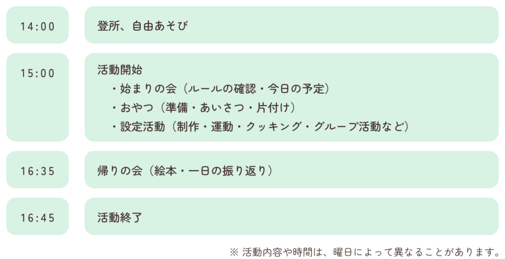 ※外出イベント等で追加費用が発生する場合は、事前に必ずご案内します。